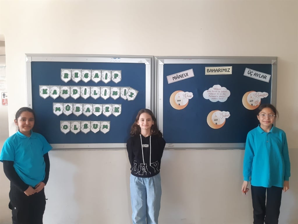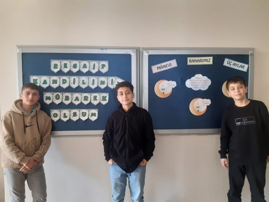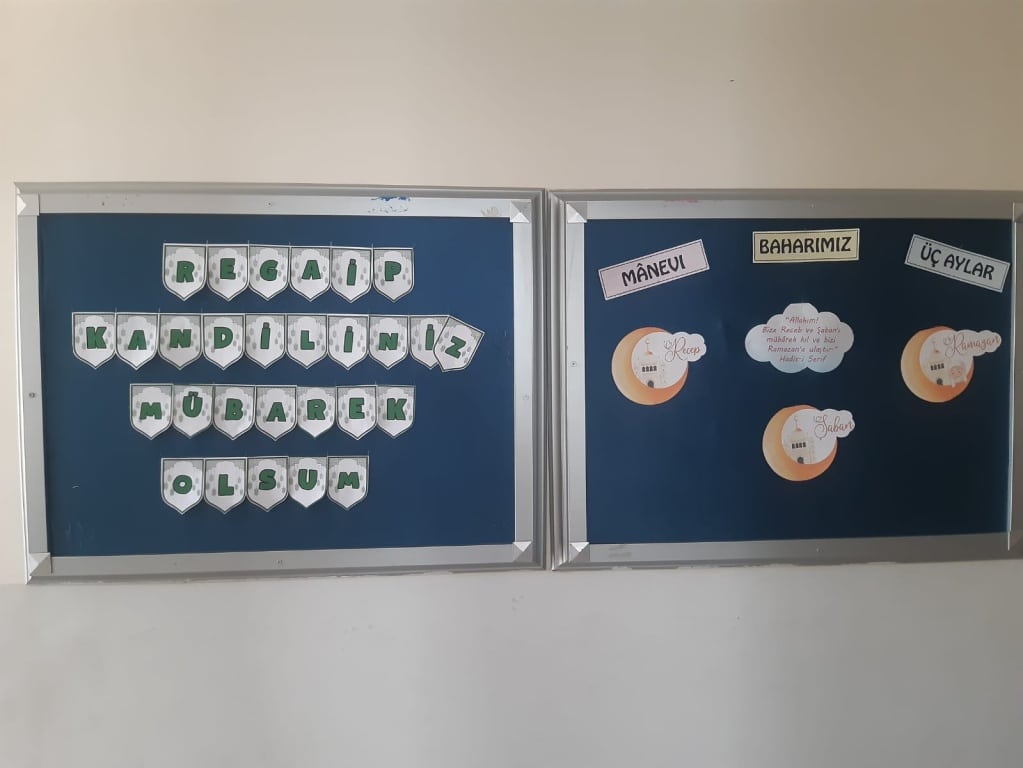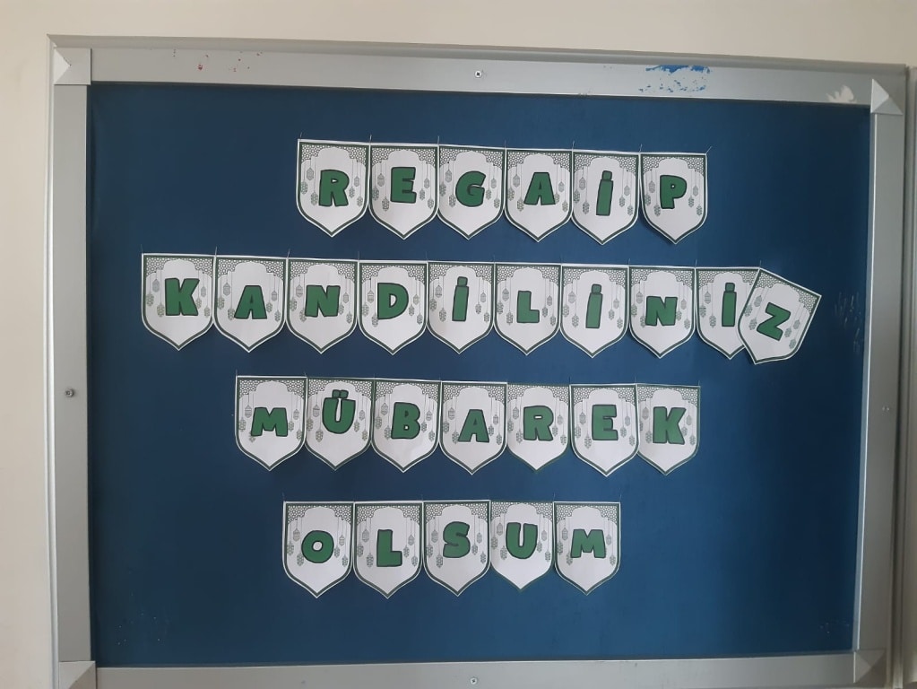 REGAİP KANDİLİ'NİN ÖNEMİ VE ANLAMININ kavranması maksadı ile İHL Meslek Dersi Öğretmenimiz Hatice MUTLU ve öğrencileri tarafından okul panosu oluşturuldu. Din Kültürü ve Ahlak Bilgisi Öğretmeni İbrahim KIRKIL tarafından da öğrencilerimize şeker ve gül suyu ikramı yapıldı
